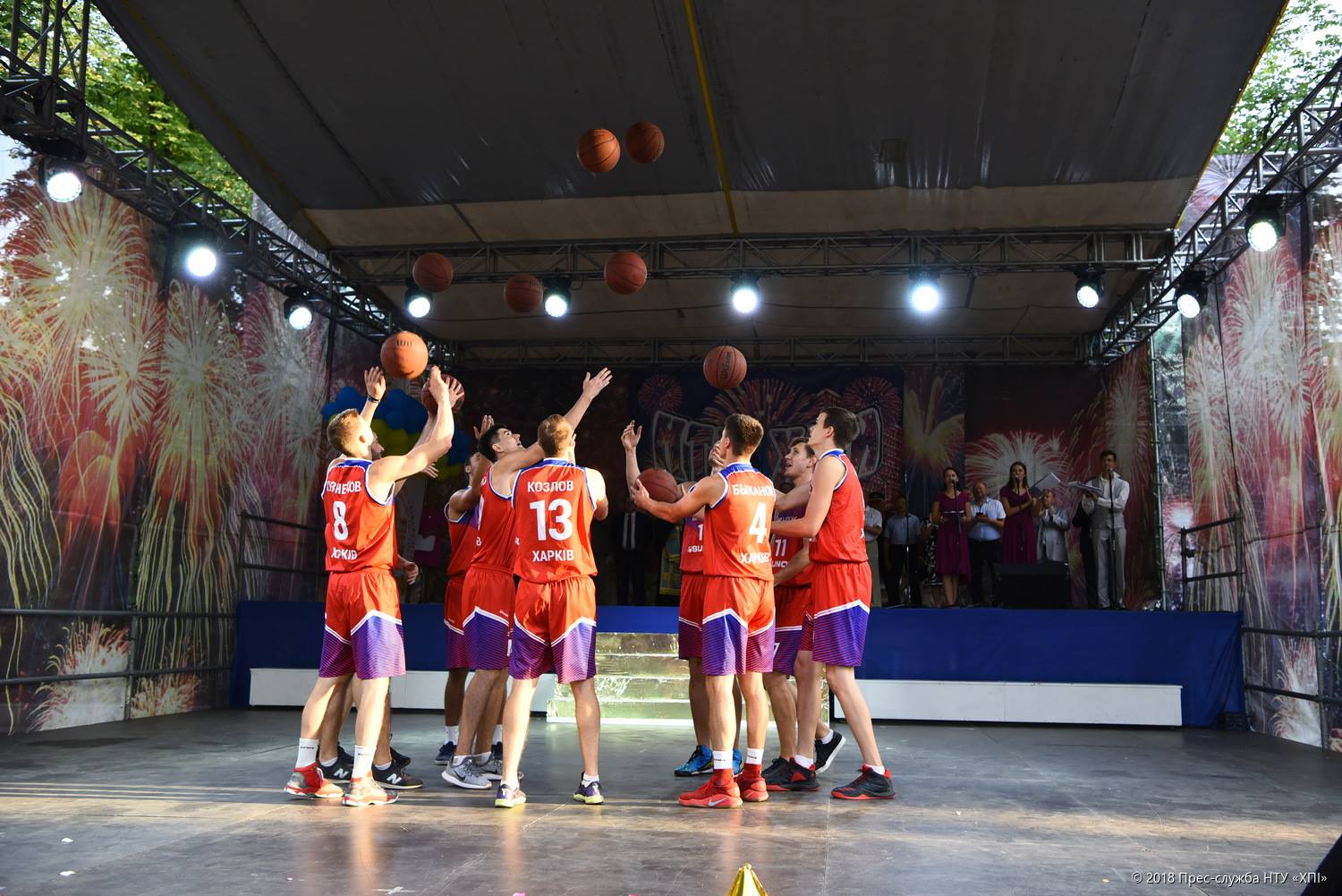 На празднике Посвящения в студенты НТУ «ХПИ» перед первокурсниками и профессорско-преподавательским коллективом с показательным номером выступили баскетболисты клуба «Политехник».
