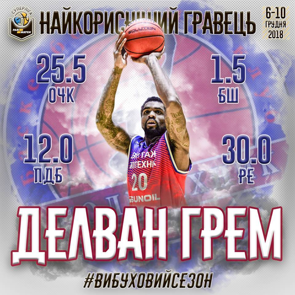 Также американский легионер, игрок БК «Политехник» Делван Грэм получил титул MVP прошлой игровой недели (6-10 декабря) Суперлиги Пари-Матч.