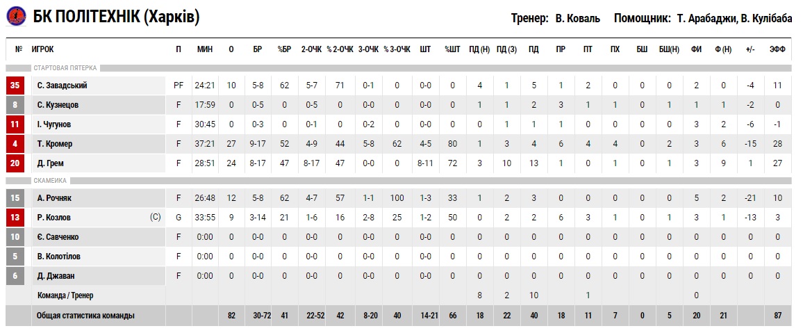 были легионеры Кромер – 27 очков и Грэм, который повторил дабл-дабл: набрал 24