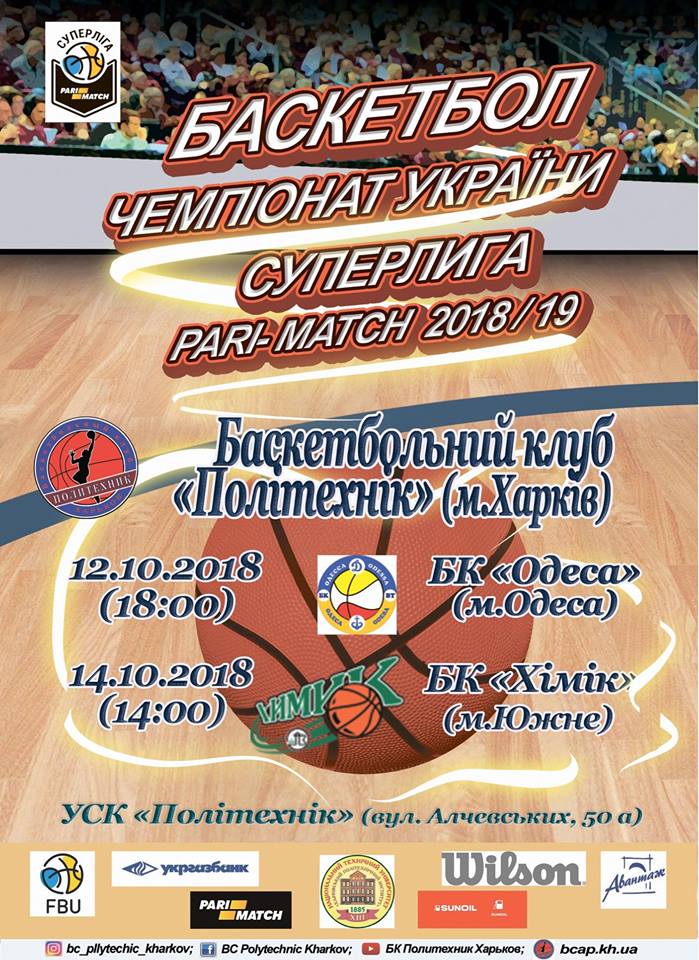 баскетбольный клуб «Политехник» проведет первый домашний матч в новом сезоне чемпионата Украины по баскетболу среди мужских команд Суперлиги Пари-Матч.