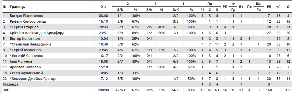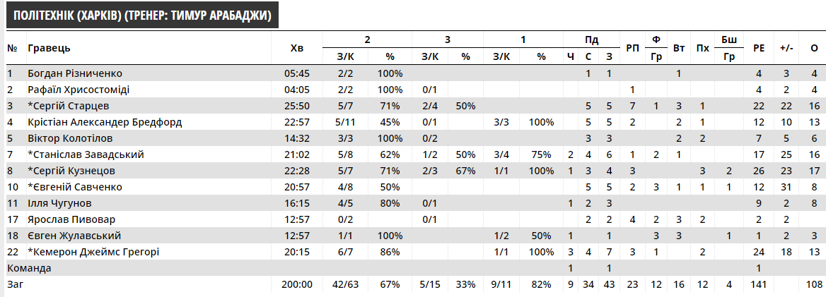 Индивидуальные показатели игроков БК ПОЛИТЕХНИК в игре